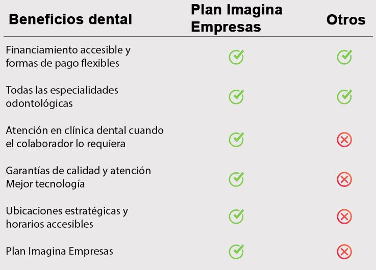 Al elegir el plan dental empresarial de clínica Dental Imagina brinda atención dental a sus empleados, a precios preferenciales y con atención personalizada en el lugar. Además reduces el porcentaje de rotación y ganas mayor lealtad y compromiso.